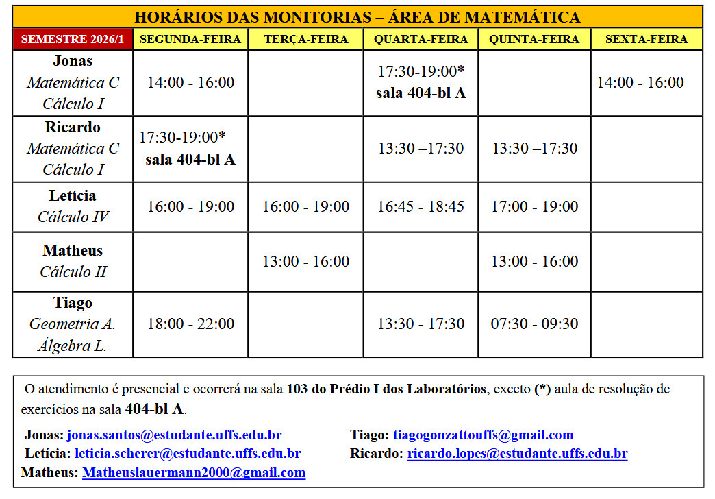Horários Semestrais do Curso de Matemática - Licenciatura