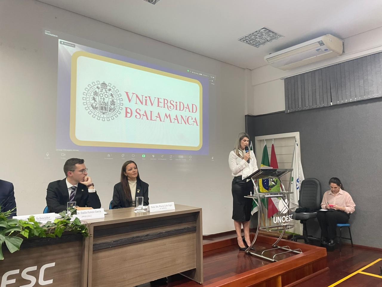 A cerimônia de instalação da Cátedra ocorreu no dia 16 de outubro, na sede da Universidade do Oeste de Santa Catarina (Unoesc), e marcou a criação de um espaço de excelência acadêmica voltado à cooperação entre Brasil e Espanha. A professora Thais Janaína Wenczenovicz foi empossada como Catedrática e assumiu a liderança do projeto, que conta com apoio da CAPES e da Universidade de Salamanca (USAL).