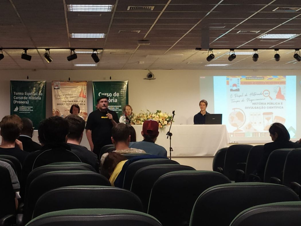O curso de licenciatura em História da UFFS - Campus Erechim realizou, entre 3 e 7 de outubro, a 10ª edição da sua Semana Acadêmica. Neste ano, o tema do evento foi “O papel do historiador em tempos de negacionismo: História Pública e divulgação científica”.