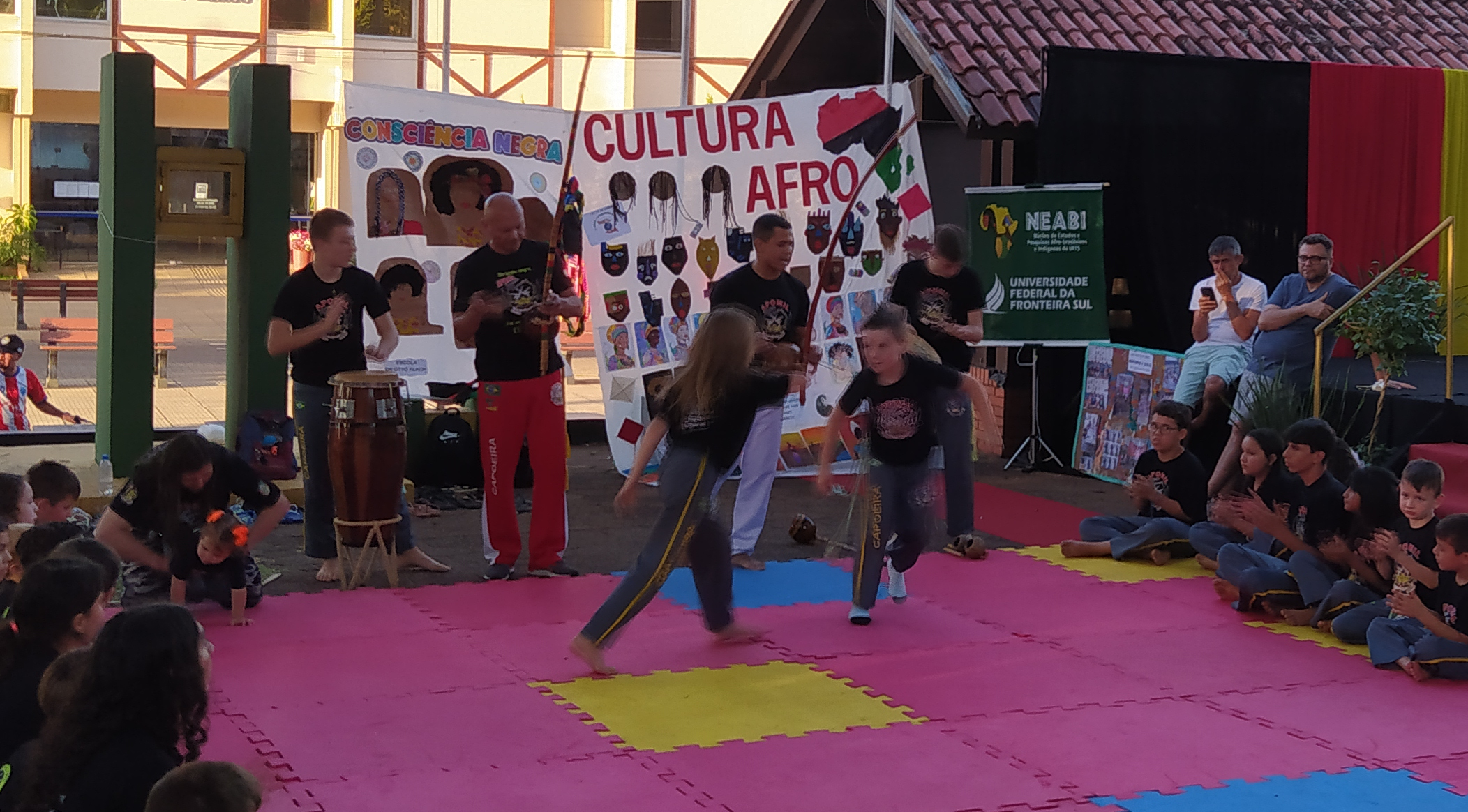 Durante o ano de 2025, o Núcleo de Estudos Afro-brasileiros e Indígenas da Universidade Federal da Fronteira Sul (NEABI), campus de Cerro Largo, realizou um trabalho potente e significativo, que só foi possível graças ao esforço coletivo e às parcerias construídas ao longo do caminho. Foram muitas mãos envolvidas, muitas instituições apoiando, pessoas e organizações que acreditam na importância de fortalecer o debate sobre as relações étnico-raciais e sobre as histórias e culturas africanas, afro-brasileiras e indígenas.