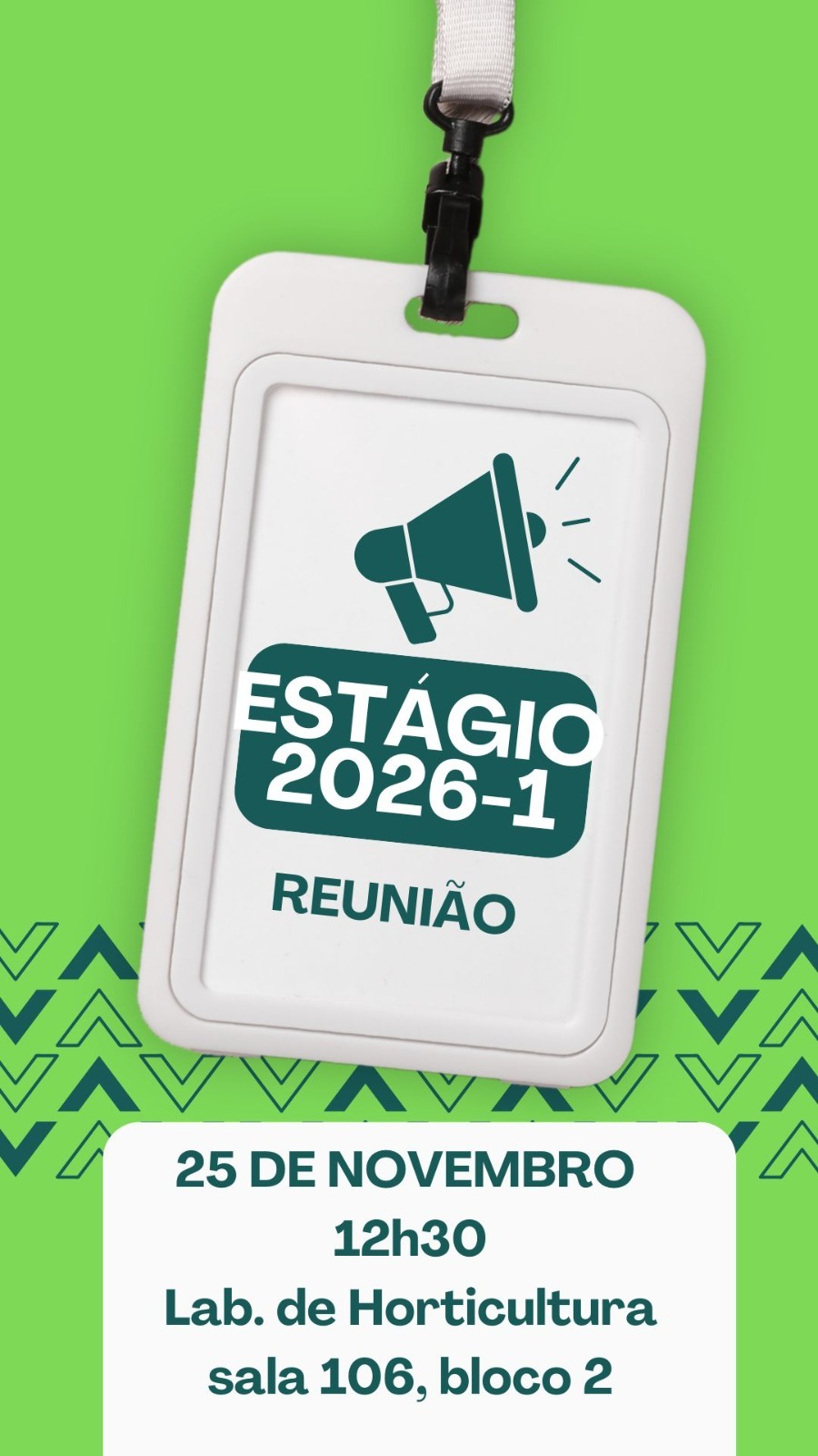 13 de novembro de 2025 - Aula de orientação sobre procedimentos de estágio: obrigatória para todos os estudantes que pretendem realizar estágios durante as férias e no 1º semestre de 2026.