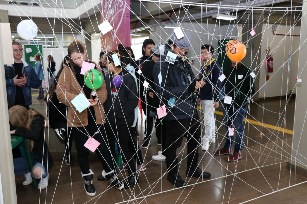Acadêmicos da 1ª fase de Arquitetura e Urbanismo da UFFS — Campus Erechim realizaram, na sexta-feira (10), intervenções artísticas a partir do tema Conexão. A atividade faz parte da disciplina “Introdução à Arte, Arquitetura e Urbanismo”, ministrada pelas professoras Natália Biscaglia Pereira, Ana Luiza Valadao Freitas Geremias e Ana Maria Schuch Araujo. As intervenções são feitas anualmente pelos acadêmicos da 1ª fase, que são divididos em grupos.
