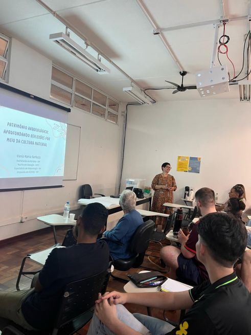 A primeira atividade foi uma oficina de arqueologia indígena, ministrada por Vania Maria Barboza. A convidada é graduada em História pela Universidade Regional Integrada do Alto Uruguai e das Missões (URI), mestra em Educação pela UFFS e doutoranda em História pela Universidade de Passo Fundo (UPF). A oficina teve como tema central a história do Rio Grande do Sul, com ênfase na região do Alto Uruguai gaúcho. Ao mobilizar o diálogo entre história e arqueologia, Vania abordou questões importantes da história indígena, tema fundamental na formação de historiadores. Além disso, ela trouxe objetos arqueológicos para despertar o interesse e curiosidade dos participantes.