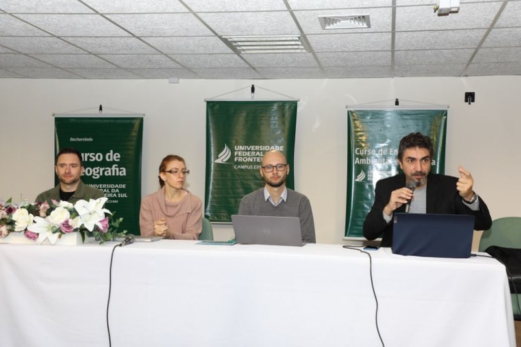Após a abertura, o professor João Paulo Peres Bezerra, da UFFS – Campus Erechim, abordou o tema “Urgência Ambiental e Justiça Climática: o sistema estadual de gestão de recursos hídricos, comitês e a participação social”. Na sequência, Ruelinton Sartori falou a respeito do Comitê da Bacia Hidrográfica dos Rios Apuaê-Inhandava, entidade da qual é presidente. A professora Deise Paludo, da UFFS – Campus Erechim, encerrou a programação da manhã com o tema “Gerenciamento de áreas contaminadas: uma breve introdução”.