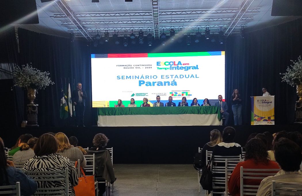 O projeto Formação Continuada do Programa Escola em Tempo Integral – Região Sul – 2025 promoveu nesta semana dois seminários estaduais, reunindo cerca de 1,9 mil pessoas. Na terça-feira, dia 6 de maio, foi realizado o evento gaúcho no Park Hotel Morotin, em Santa Maria (RS), e na quarta-feira, dia 7 de maio, o paranaense, no Espaço Fiori, em Guarapuava (PR).