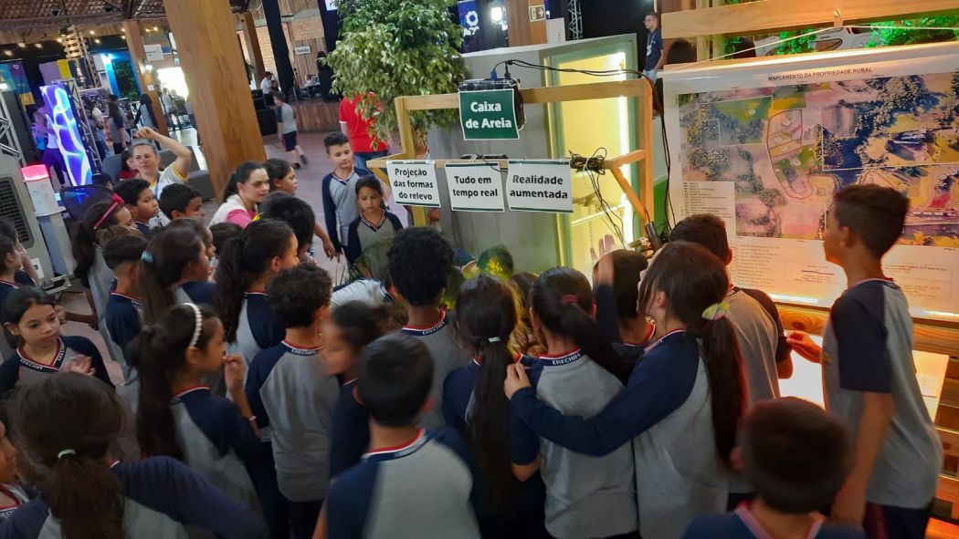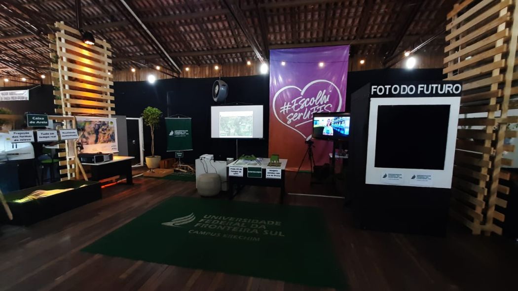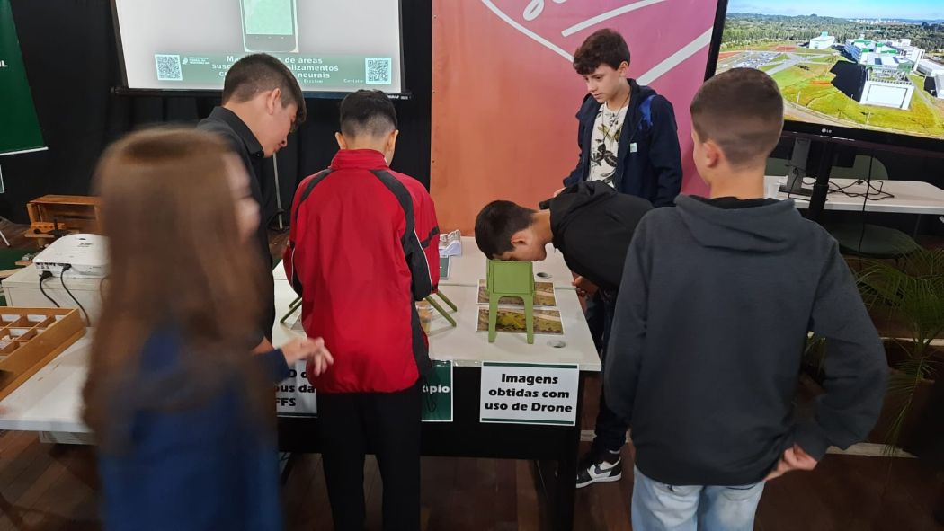 As escolas da região estão levando seus alunos para os espaços da feira. No estande da UFFS, elas se divertem com a caixa de areia que simula uma realidade aumentada, projetando formas de terreno em tempo real. Há também materiais da Brinquedoteca e o espaço da “Foto do Futuro”, onde os visitantes podem tirar uma foto simulando estarem em uma solenidade de formatura. A Instituição também apresenta um estereoscópio, objeto que possibilita a visão tridimensional a partir da utilização de um par de fotografias. São utilizadas imagens feitas com drone, possibilitando visualizar alguns locais do Campus em uma visão 3D.